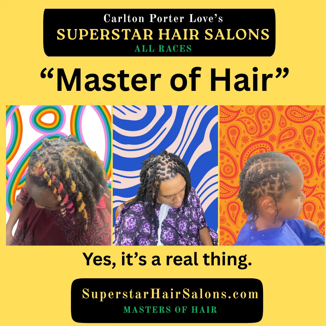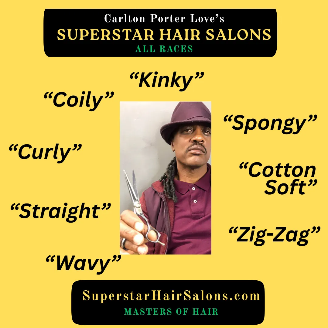 Master of Hair salon for all hair types: Kinky, Coilly, Straight, Wavy, Spongy, Brillo, and Yours. (Hair types differ even with your family.)