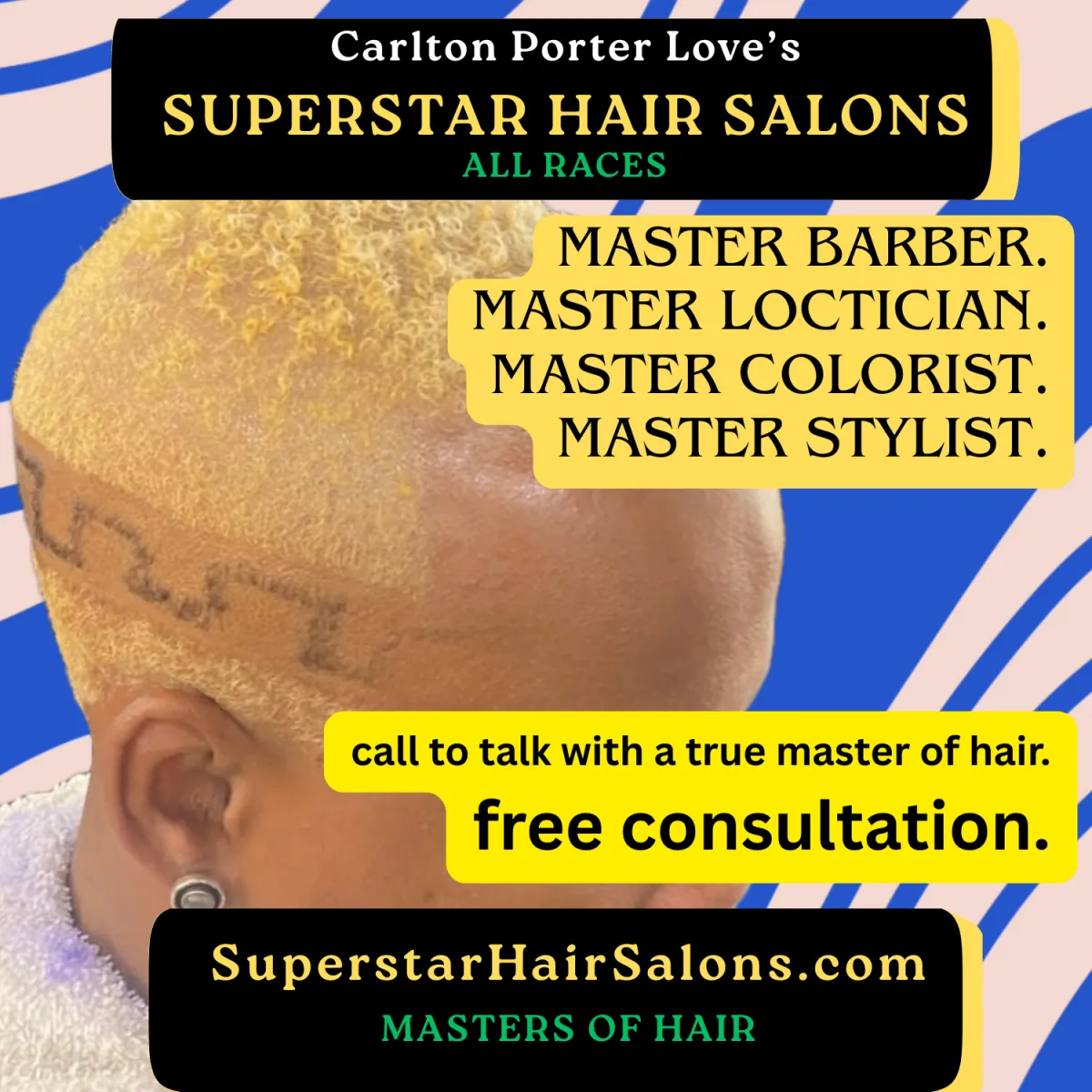 Carlton earned mastery status after decades of perfecting hair skills learned under 5 Masters of Hair with different specialties.